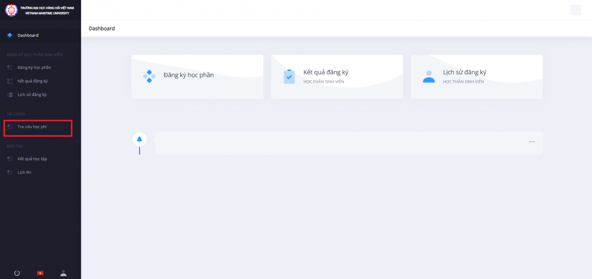 Bước 2: Tại menu chính, phần Tài chính, chọn Tra cứu học phí.