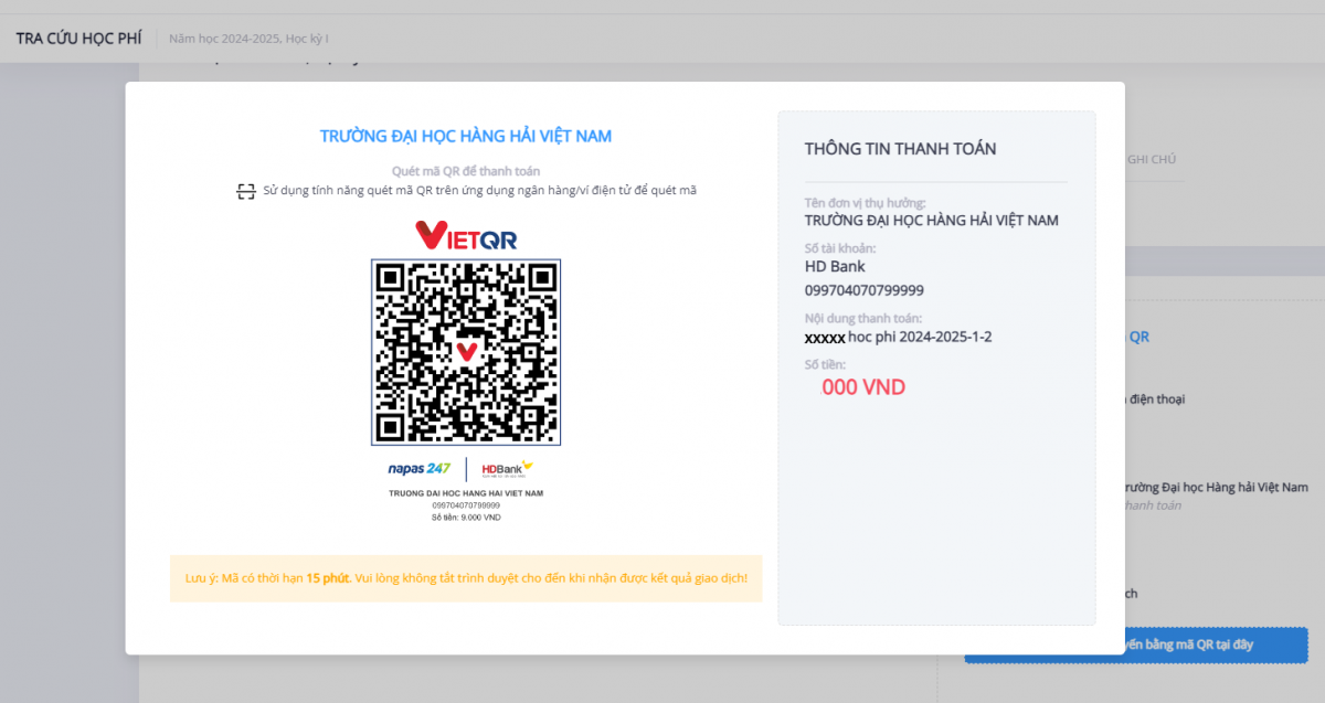 HƯỚNG DẪN THANH TOÁN HỌC PHÍ QUA MÃ QR